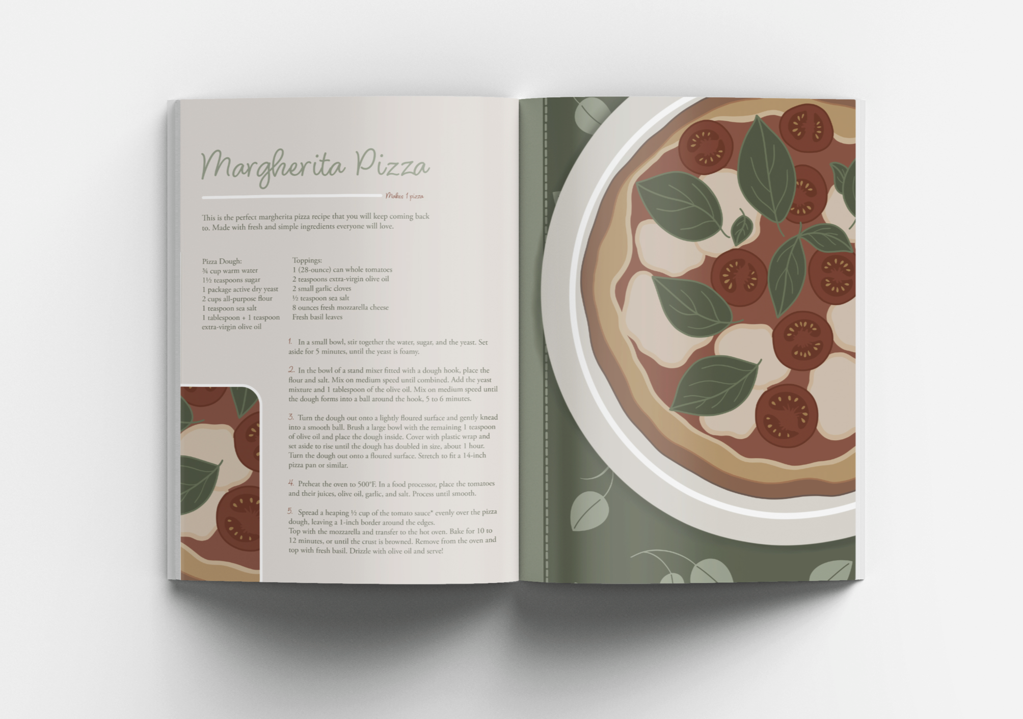 Developed a cookbook concept rooted in a narrative film, using carefully illustrated recipes to explore how storytelling can live within everyday recipes. Each recipe is connected to a specific scene from the movie, allowing the visuals to carry tone and emotion while still serving a basic function of providing a recipe. The project combines expressive and detailed illustration with structured layouts and clear hierarchy, resulting in pages that feel inviting to inspire readers to make the recipes for themselves.