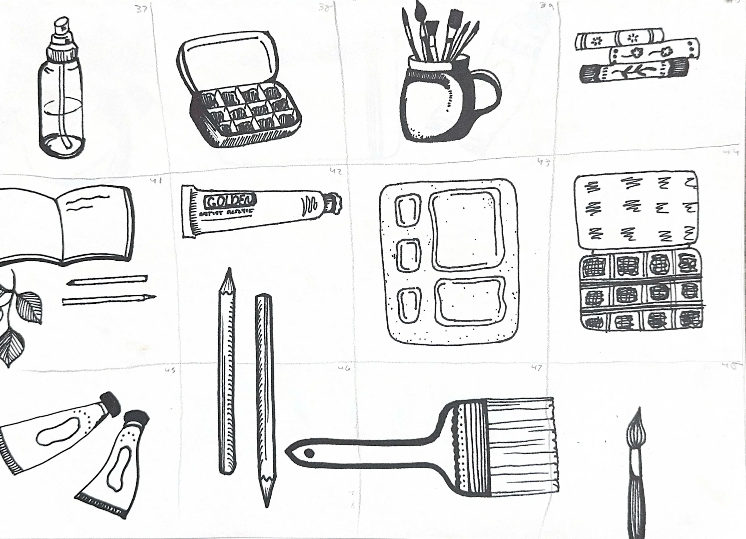 Created a knolling illustration consisting of art supplies, using structure and repetition to bring order and visual rhythm to everyday objects. The project involved extensive sketching and layout exploration to test different arrangements before refining the final composition. A cohesive color palette and consistent illustration style were used to unify the objects and create a visually satisfying, intentional final layout.